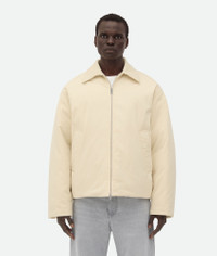 Puffer jacket in cotton twill with detachable Intrecciato leather collar. Product Details - Cotton twill puffer jacket - Detachable Intrecciato leather collar - Zip closure - Lined in cotton twill - Regular fit - Material: 69% cotton, 31% polyamide - Color: Sea Salt - Made in: Italy - Product code: 809546V1X509028 Size & Fit - Model is 189 cm | 6'2" and is wearing a Bottega Veneta size S