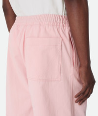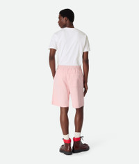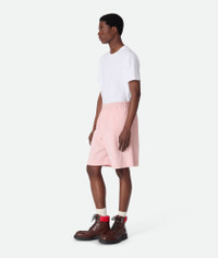 Shorts in irregular washed cotton twill. Product Details - Washed irregular cotton twill shorts - Zipper and hook closure - Lined - Color: Camelia - Made in: Italy - Product code: 833842V5PB08176 Size & Fit - Model is 188 cm | 6'2" and is wearing a Bottega Veneta size S