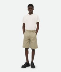Shorts in light cotton twill. Product Details - Light cotton twill shorts - Wide leg - Special label on the back pocket - Zip, hook, and button closure - Material: 100% cotton - Color: Flint - Made in: Italy - Product code: 815195V4CS02145 Size & Fit - Model is 190 cm|6'2" and is wearing a Bottega Veneta size 46
