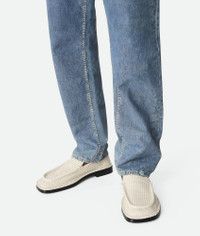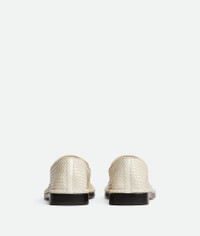 Loafer realised in woven shiny leather. Product Details - Woven shiny leather loafer - Material: Calfskin - Lining: Lambskin - Colour: Sea Salt - Leaher outsole - Made in: Italy - Product code: 827137V5R709031