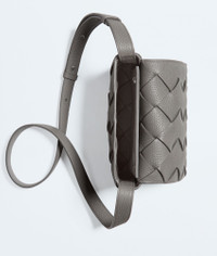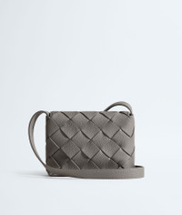 Cross-body bag in grained Intreccio leather. Product Details - Grained Intreccio leather cross-body bag with adjustable strap - Single interior zipped pocket - Magnetic closure - Lining: Calf leather bonded Intreccio - Color: Basalt - Hardware: Silver finish - Made in: Italy - Product code: 795637V4FV11638 Material - Material: calfskin Size & Fit - Height: 16.5 cm | 6.5" - Width: 22.5 cm | 8.8" - Depth: 5.5 cm | 2.2" - Strap drop: 57.5 cm | 22.6"