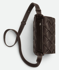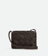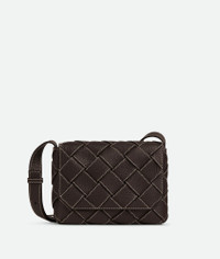 Cross-body bag in grained Intreccio leather with contrasted stitching. Product Details - Grained Intreccio leather cross-body bag with contrasted stitching and adjustable strap - Single interior zipped pocket - Magnetic closure - Lining: Calf leather bonded Intreccio - Color: Fondant - Hardware: Silver finish - Height: 16.5 cm | 6.5" - Width: 22.5 cm | 8.9" - Depth: 5.5 cm | 2.2" - Strap drop: 57.5 cm | 22.6" - Made in: Italy - Product code: 795637V5R902314