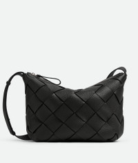Hobo bag in grained Intreccio leather. Product details • Grained Intreccio leather hobo bag with adjustable strap • Single interior zipped pocket and two flat open pockets • Zip closure Material: Calfskin • Lining: Canvas • Color: Black • Hardware: Silver finish • Height: 24 cm | 9.4" • Width: 39 cm | 15.4" • Depth: 16 cm | 6.3" • Strap drop: 42 cm | 16.5" Made in: Italy