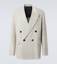 Product Details - Material: 26% silk, 25% cotton, 25% polyester, 24% viscose - Care instructions: dry clean - Made in Italy - Designer color name: Chalk/Algae Melange - Closure: double-breasted buttoned front - Pockets: flap pockets, internal pockets - Lining: 99.8% viscose - Contains non-textile parts of animal origin - Item number: P00998766 Size & Fit - True to size - Straight fit - Non-stretchy fabric - Falls below the hip - The model in the picture is 185cm-6'1" and wearing a size IT 50