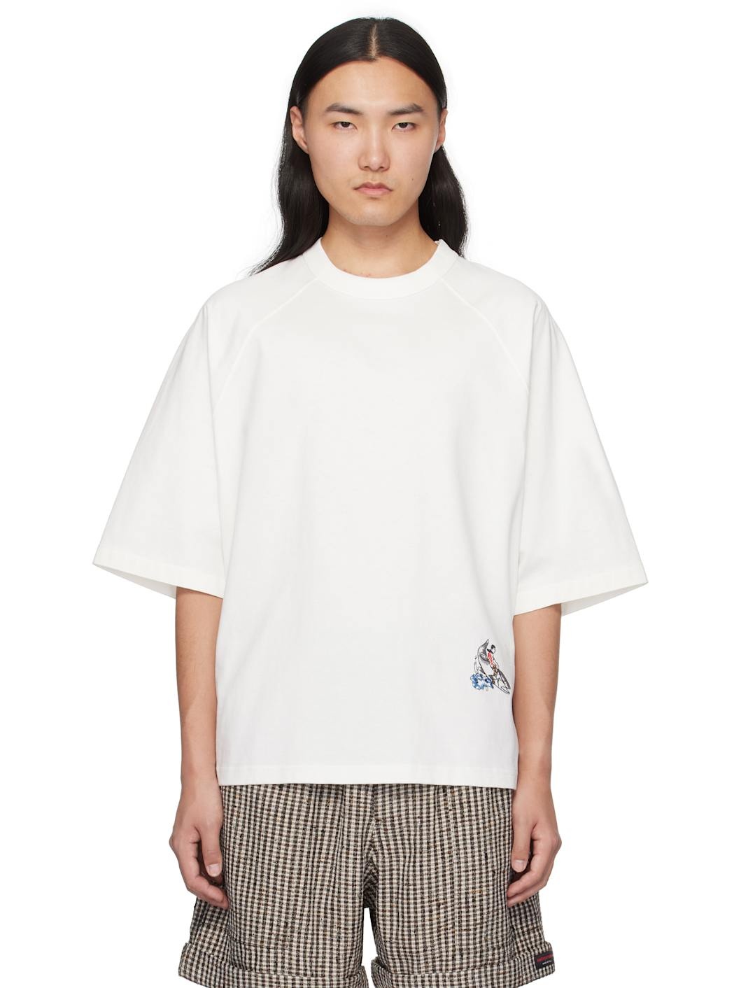 Cotton jersey T-shirt. · Rib-knit crewneck · Embroidered graphic at front · Raglan sleeves Supplier color: Chalk