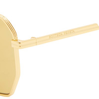Channel chic 70s style with the Bottega Veneta BV1012S Sunglasses. The slim gold-tone metal frame is engraved with the brand logo, with the soft nose pads guaranteeing all-day comfort. - Metal Frames - Hexagonal Aviator - Nose Pads - Engraved Logo - 100% UV Protection