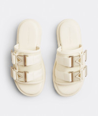 • Padded technical fabric sandals Material: 100% Lambskin • Lining: Sporty mesh fabric • Color: String • Hardware: Gold finish • Ultra lightweight rubber outsole • Platform: 4.5 cm | 1.8" Made in: italy