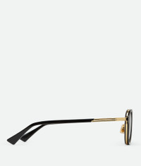 Panthos sunglasses in acetate and gold-finished metal. Product Details - Acetate frame with metal structure - Acetate temple tips for added comfort - Alternative fit - Suitable for progressive lenses - This product comes with demonstrative lenses. Please refer to an optician or specialist for prescription lenses - Lens width: 53 mm | 2.1"; Bridge length: 19 mm | 0.7"; Temple length: 145millimeters - BV1377OA 001 - Color: Black/Transparent - Made in: Italy - Product code: 832954V2Q301295 Material - Material: Recycled acetate, metal Size & Fit - A - Hinges distance: 143 mm | 5.6" - B - Bridge length: 21 mm | 0.8" - C - Lens width: 51 mm | 2.01" - D - Temple length: 145 mm | 5.7"