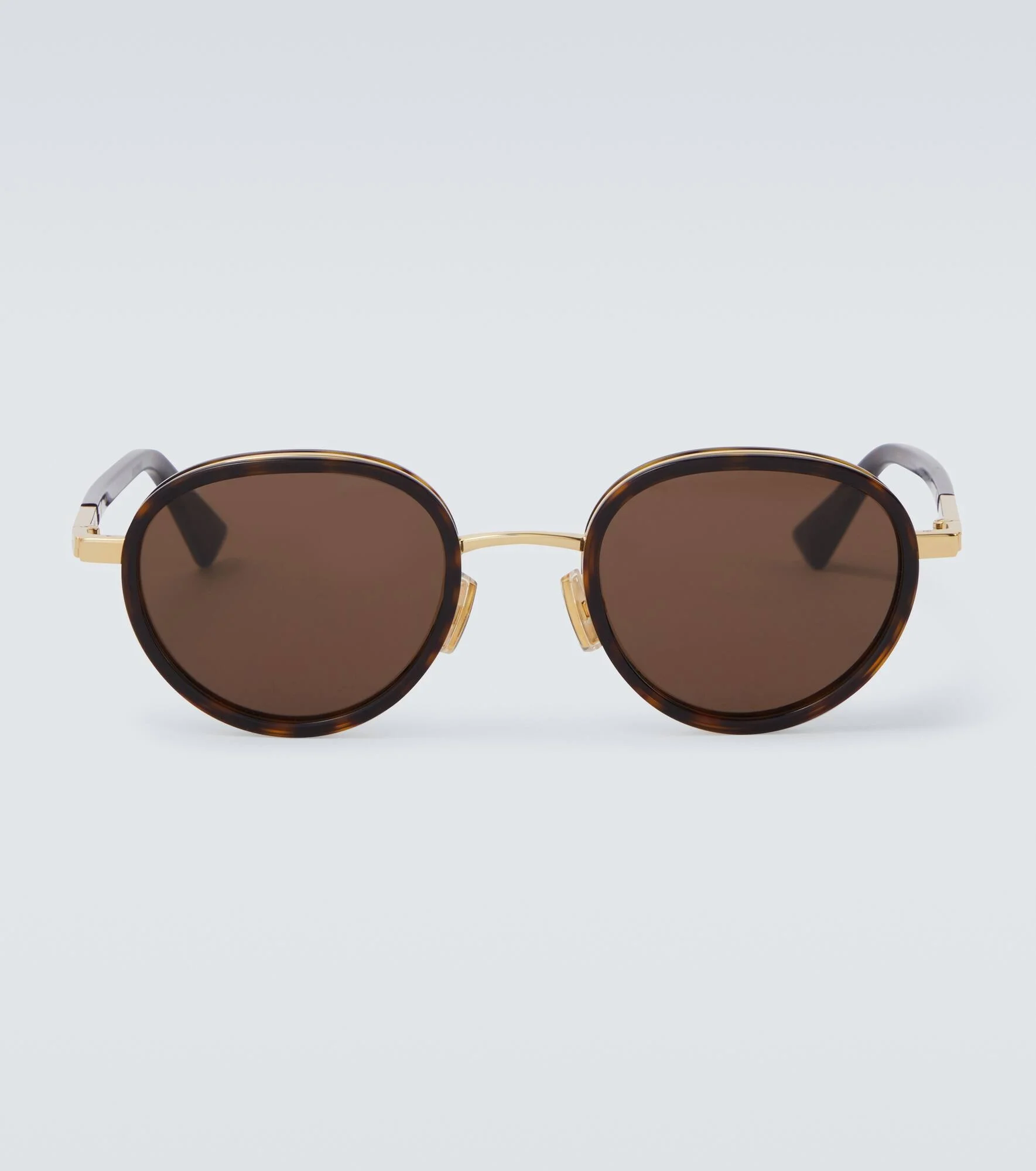 Bottega Veneta has inspired individuality and new modes of craftsmanship since 1966. The Forte Panthos sunglasses have round tortoiseshell frames, dark brown lenses, and gold-toned accents. Product Details - Frame material: acetate, metal - Frame color: brown, gold - Lens filter category 3 - Lens color: brown - Made in Italy - Includes: logo-embossed case, cleaning cloth - The color of the case may vary - Item number: P01054386 Size & Fit - Lens width: 42mm-1.65" - Bridge size: 18mm-0.7" - Earpiece length: 15mm-0.6"