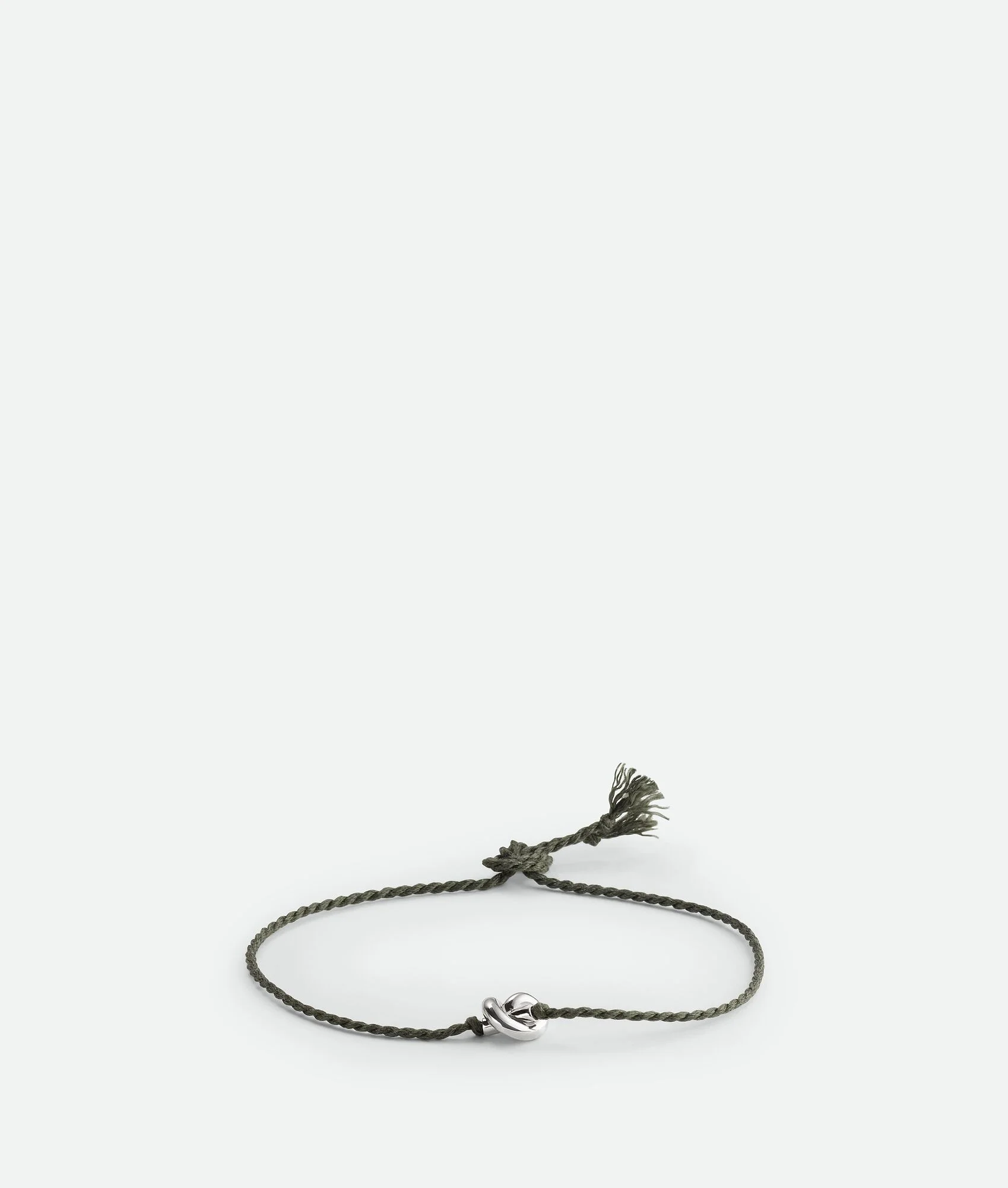 Friendship bracelet with signature knot detail in sterling silver. Product Details - Sterling silver and silk cord knot bracelet - Once tied, the bracelet is meant to be worn permanently and should not be removed - One size only - Tie closure - Length: 34 cm | 13.4” - Color: Algae - Made in: Italy - Product code: 815941V58O12932 Material - Material: Silk, sterling silver