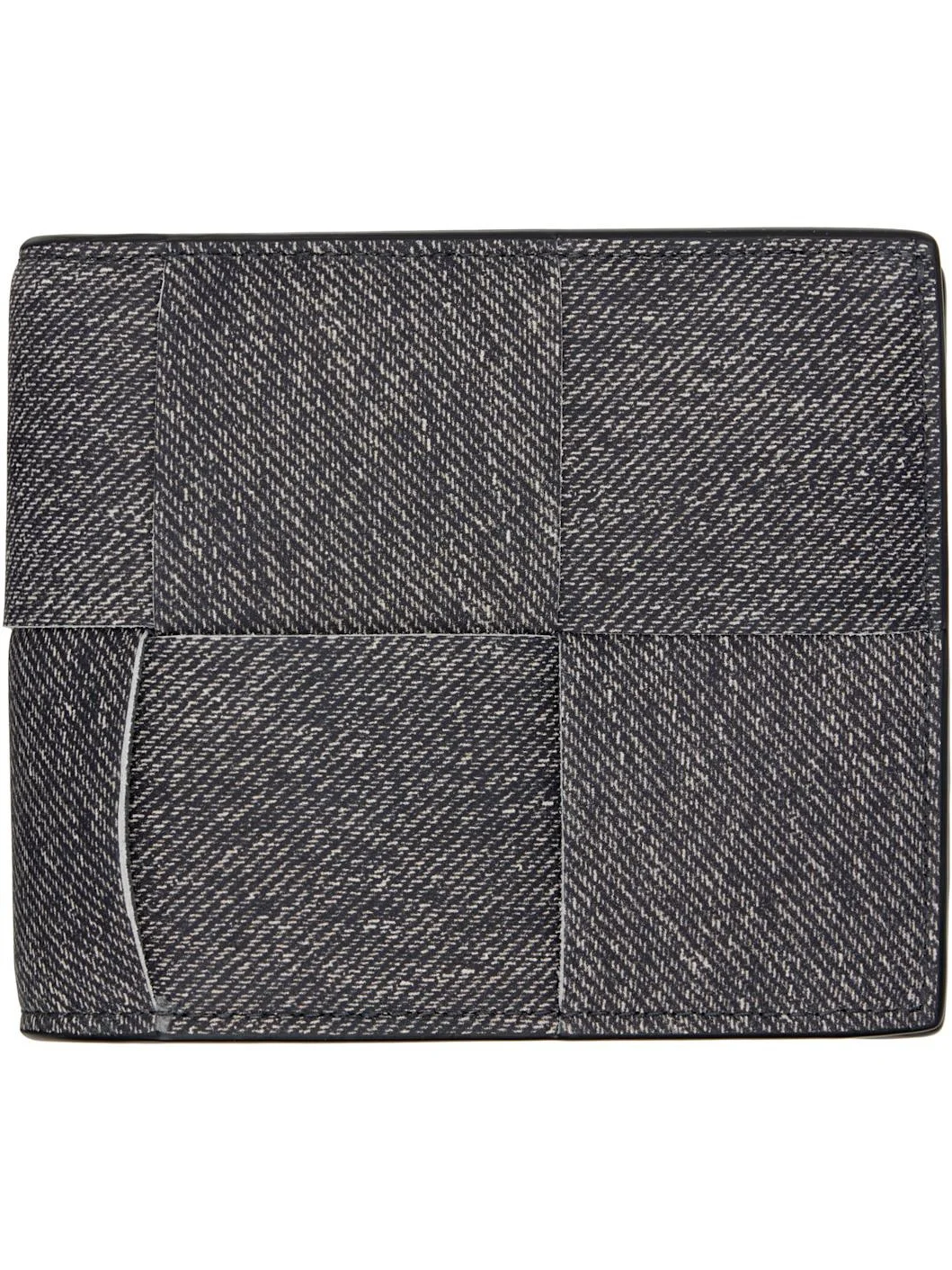 Intreccio-woven nubuck bifold wallet. · Printed denim pattern throughout · Six card slots · Single note slot · Textile and calfskin lining · H3.5" x W4.25" Supplier color: Mid grey/ardoise Leather. Made in Italy 252798M164013