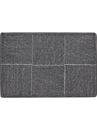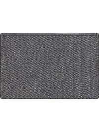 Intreccio-woven nubuck bifold card holder. · Printed denim pattern throughout · Four card slots · Single note slot · Textile and calfskin lining · H4" x W3.5" Supplier color: Mid grey/ardoise Leather. Made in Italy 252798M163011