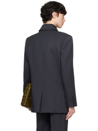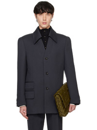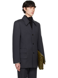 Stretch wool tricotine blazer. · Spread collar · Button closure · Flap pockets · Padded shoulders · Three-button surgeon's cuffs · Central vent at back hem · Full viscose twill lining Supplier color: Shadow Body: 99% wool, 1% elastane. Lining: 100% viscose. Made in Italy 242798M195004