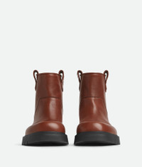 Ankle boot in smooth calfskin with Intrecciato leather side loops. Product Details - Leather ankle boot - Intrecciato leather side loops - Material: Calfskin - Lining: Calfskin - Color: Sequoia - Rubber outsole - Flatform: 4 cm | 1.8” - Made in: Italy - Product code: 816624V54W02222