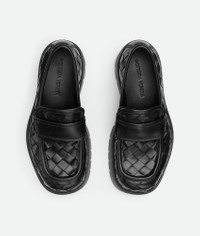 Loafer realised in smooth calfskin with all-over Intrecciato craftsmanship. Product Details - Intrecciato leather loafer - Material: Calfskin - Lining: Calfskin - Color: Black - Rubber outsole - Flatform: 4.5 cm | 1.8" - Made in: Italy - Product code: 796711V2WT21000