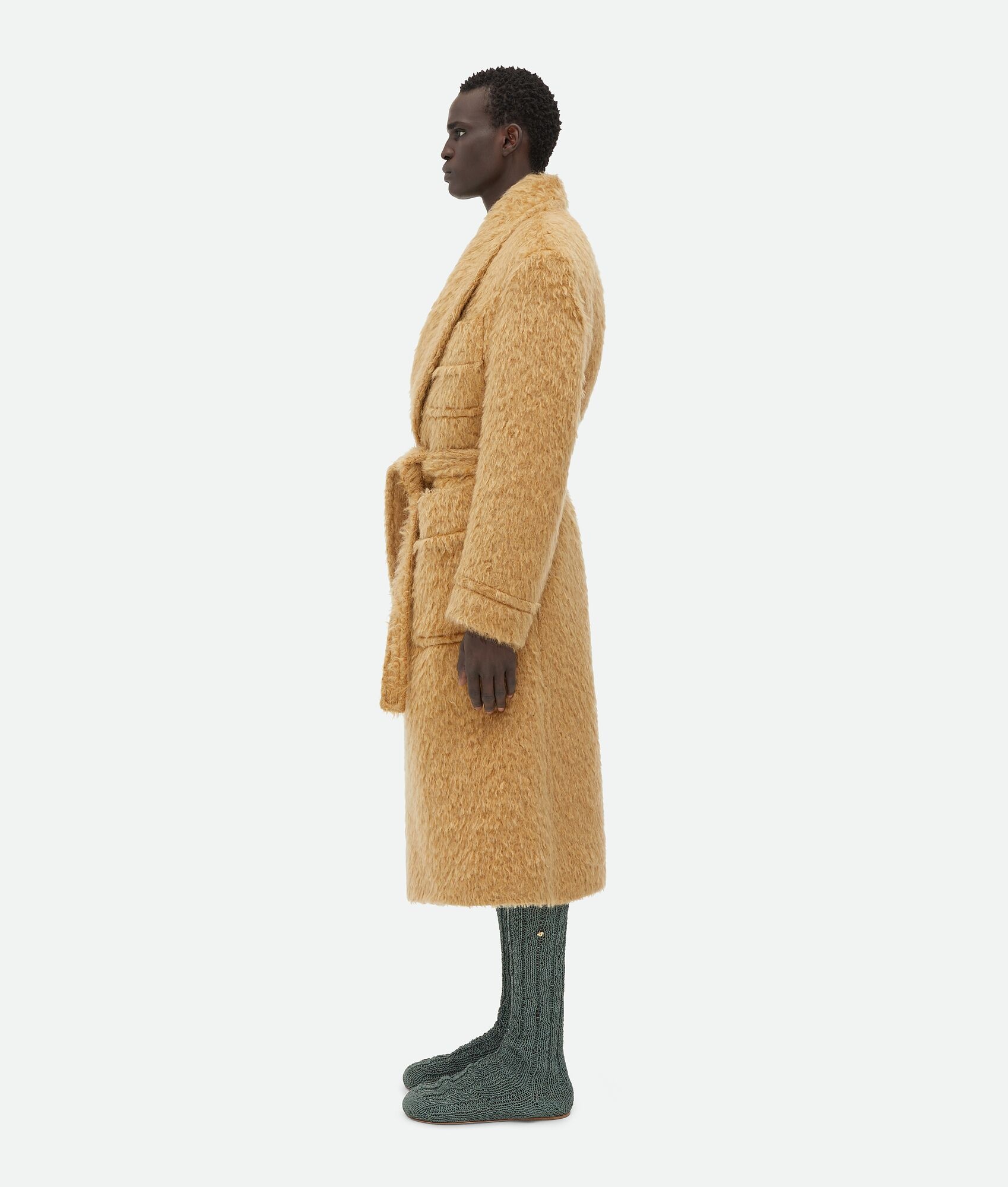 Coat realised using a special blend of wool and mohair to create a rich fabric with Product details • Hairy wool and mohair coat • Belt closure • Half lined • Relaxed fit Material: 55% Wool, 45% Mohair • Color: Paper Bag Made in: Italy Size & fit • Model is 185 cm|6' and is wearing a Bottega Veneta size 46