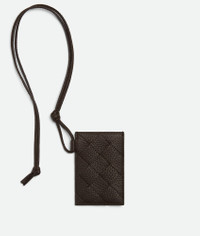Badge holder in grained Intrecciato calf leather. Product Details - Grained Intrecciato calfskin leather badge holder - One card compartment - Leather lanyard - Lining: Calfskin - Color: Fondant - Hardware: Silver finish - Made in: Italy - Product code: 844600V5I502145 Material - Material: Calfskin Size & Fit - Height: 10.5 cm (4.1") - Width: 7 cm (2.8") - Depth: 0.5 cm (0.2") - Handle drop: 45 cm (17.7")