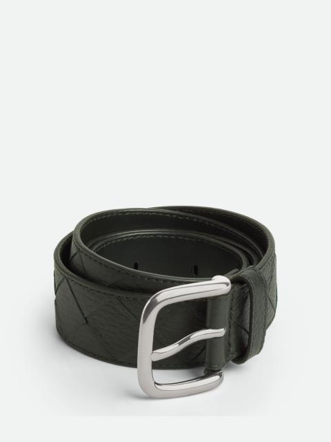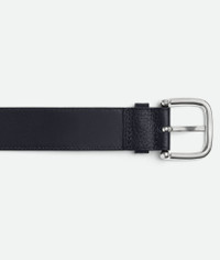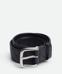 Belt in grained Intrecciato calf leather. Product Details - Intrecciato grained calfskin leather belt - Metal buckle - Prong closure - Lining: Calf leather - Color: Nocturnal - Hardware: Silver finish - Made in: Italy - Product code: 829228V5I514182 Material - Material: Calfskin Size & Fit - Height: 3.5 cm | 1.4" - Depth: 0.5 cm | 0.2"
