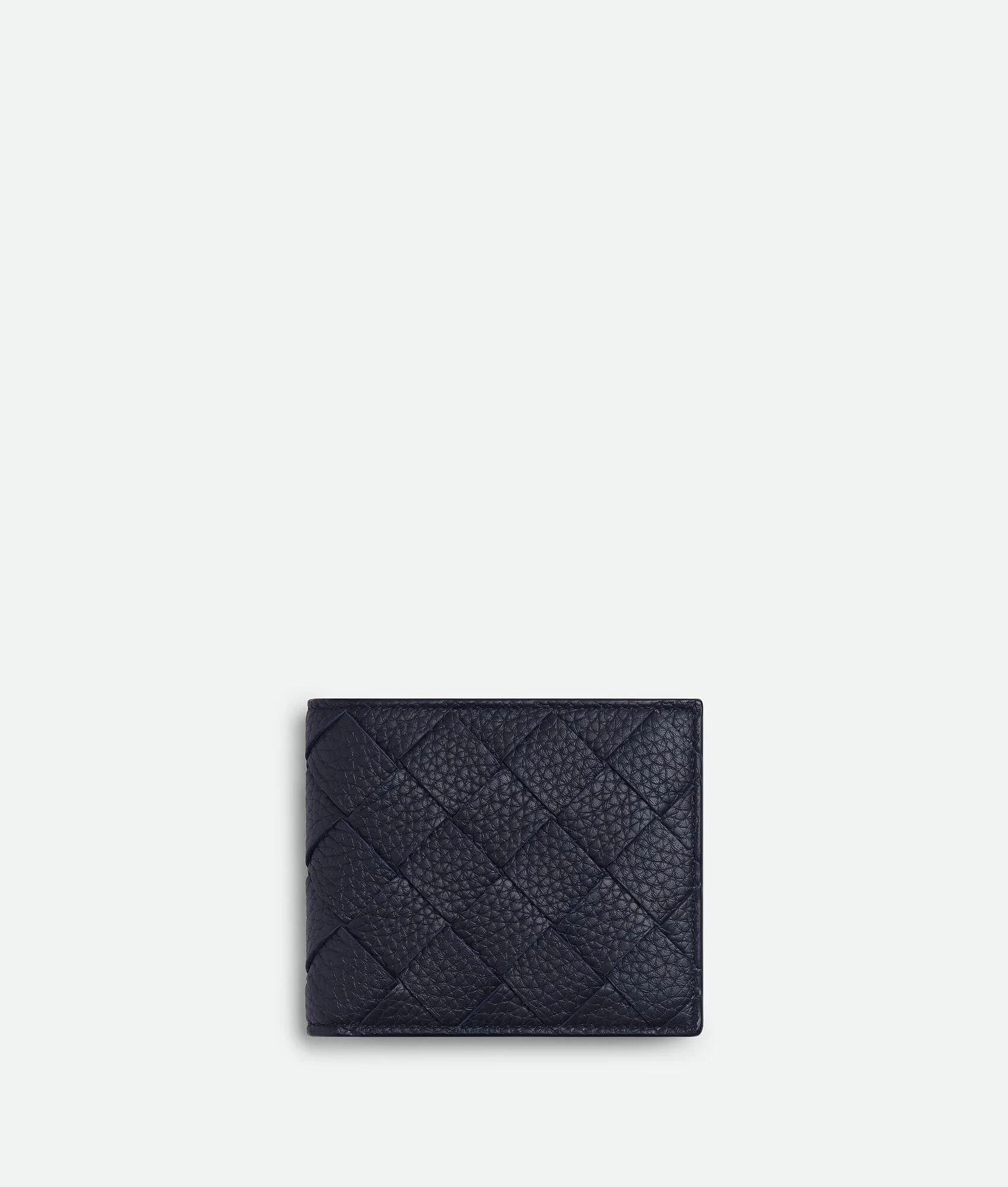 Bi-fold wallet in grained Intrecciato calf leather. Product Details - Grained Intrecciato calfskin leather wallet. - Eight card slots, two note compartments, two additional pockets - Lining: Calf leather - Color: Nocturnal - Made in: Italy - Product code: 743211V5I514182 Material - Material: Calfskin Size & Fit - Height: 9.5 cm | 3.7" - Width: 11 cm | 4.3" - Depth: 1 cm | 0.4"