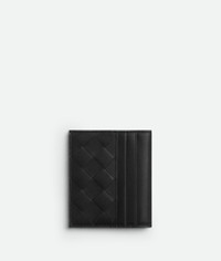 Intrecciato calfskin leather wallet with contrasted interior. Product Details - Six external card slots, two internal flaps to hold bills and receipts - Material: calfskin - Lining: Calfskin - Color: Black/Madder Brown - Hardware: Silver finish - Height: 9 cm | 3.5” - Width: 10 cm | 3.9” - Depth: 0.5 cm | 0.2” - Made in: Italy - Product code: 793863VCPQ51225
