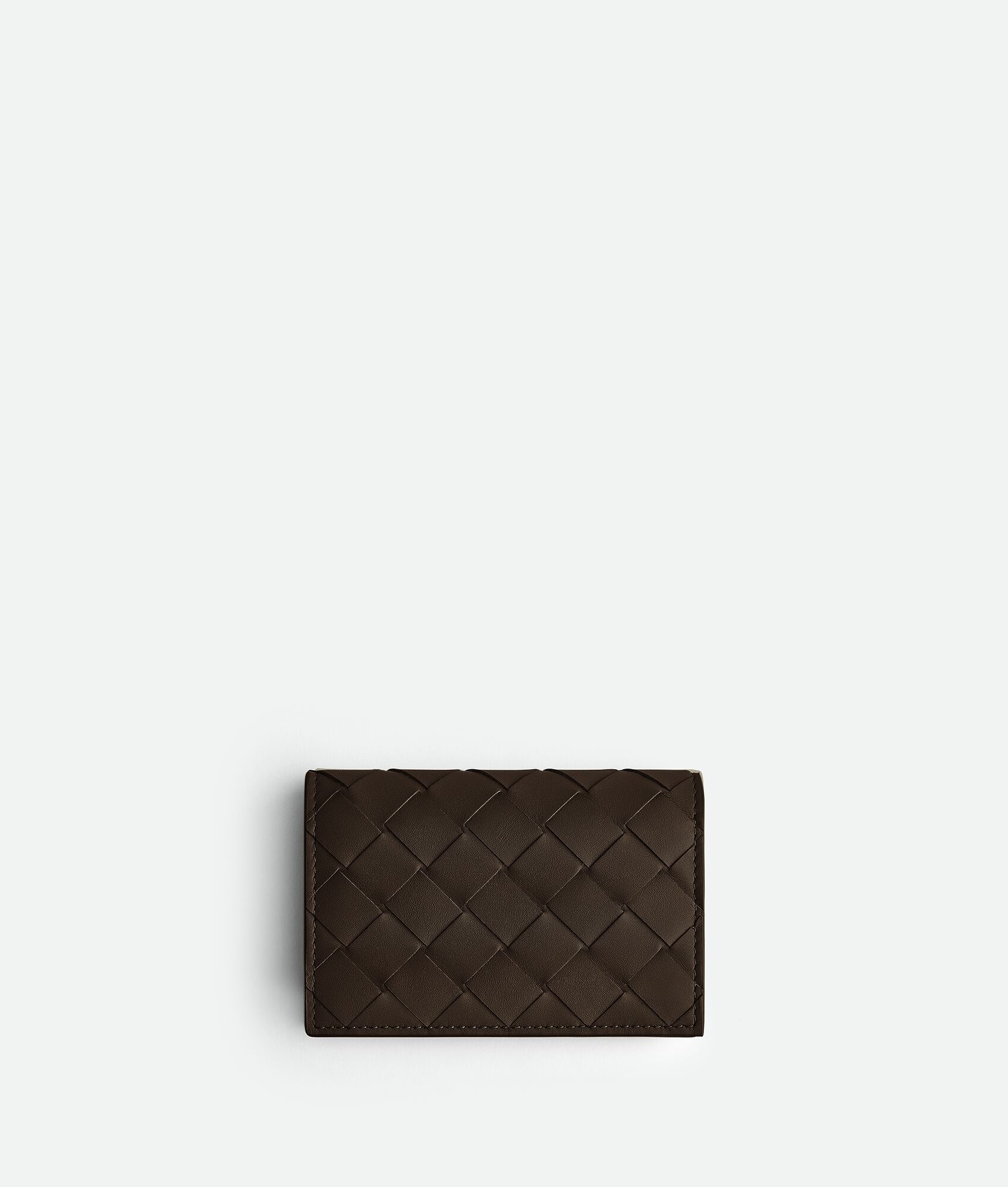 Intrecciato leather card case. Make it unique with a handmade customization Product Details - Intrecciato leather card case - One compartment, one card slot, one back pocket - Material: Calfskin - Lining: Calfskin - Color: Fondant - Height: 7.5 cm | 2.9" - Width: 11 cm | 4.3" - Depth: 2.5 cm | 1" - Made in: Italy - Product code: 605720VCPQ32145