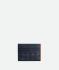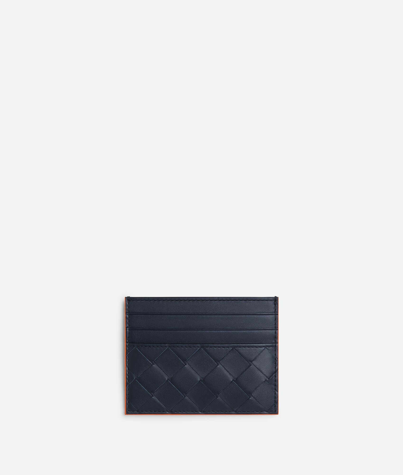 Intrecciato calfskin leather card case with contrasted edges Product Details - Six card slots, one central pocket - Material: Calfskin - Lining: Calfskin - Color: Space/Papaya - Height: 8 cm | 3.1" - Width: 10.5 cm | 4.1" - Depth: 0.5 cm | 0.2" - Made in: Italy - Product code: 743209V3LZ28946