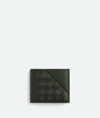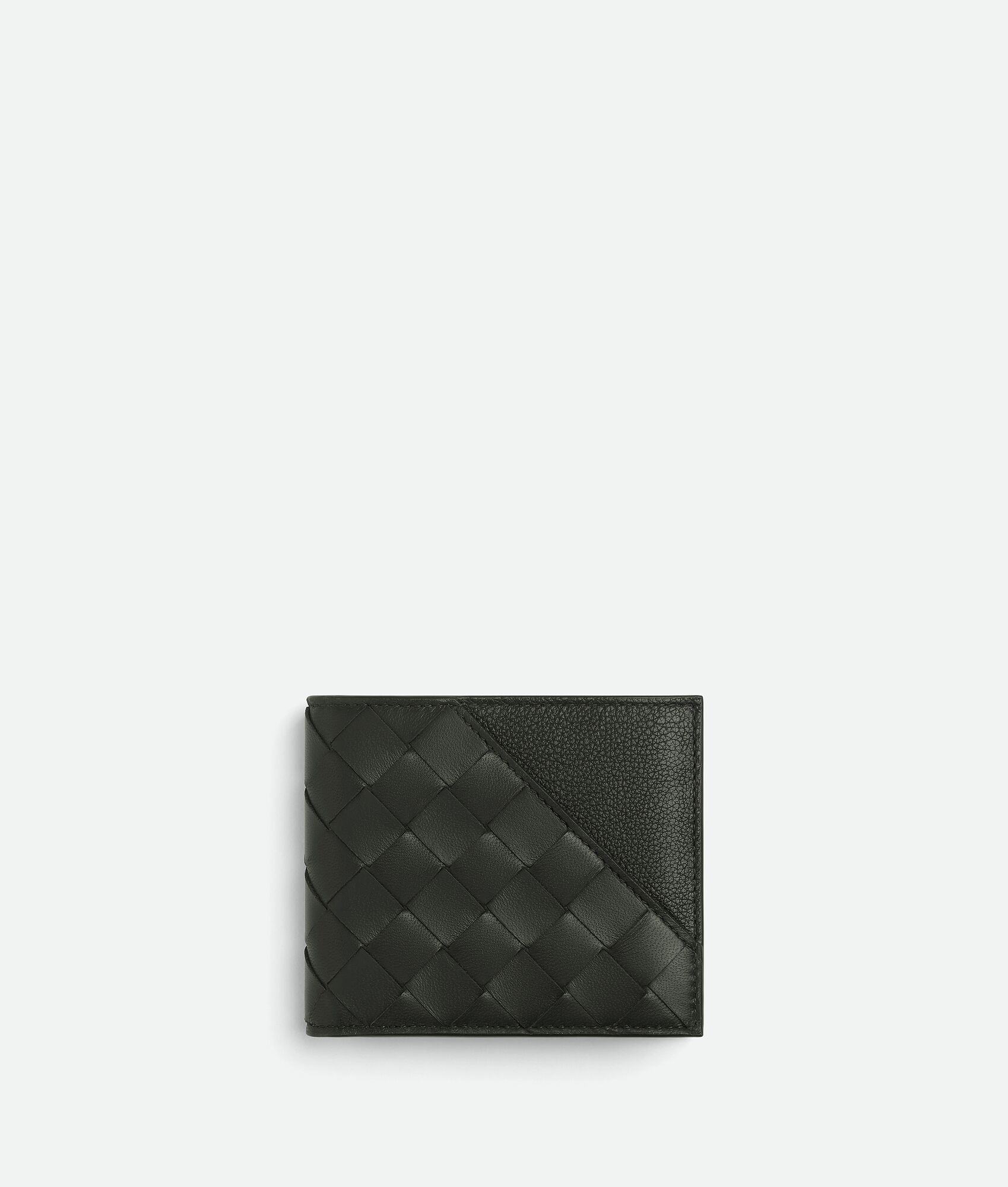 Intrecciato nappa leather wallet with diagonal detail . Product Details - Eight card slots, two bill compartments, two additional pockets - Diagonal detail creating an external pocket for extra bills and receipts - Material: lambskin - Lining: Calfskin - Color: Dark Green - Hardware: Silver finish - Height: 9.5 cm | 3.7” - Width: 11 cm | 4.3” - Depth: 1 cm | 0.4” - Made in: Italy - Product code: 818098V57M13009