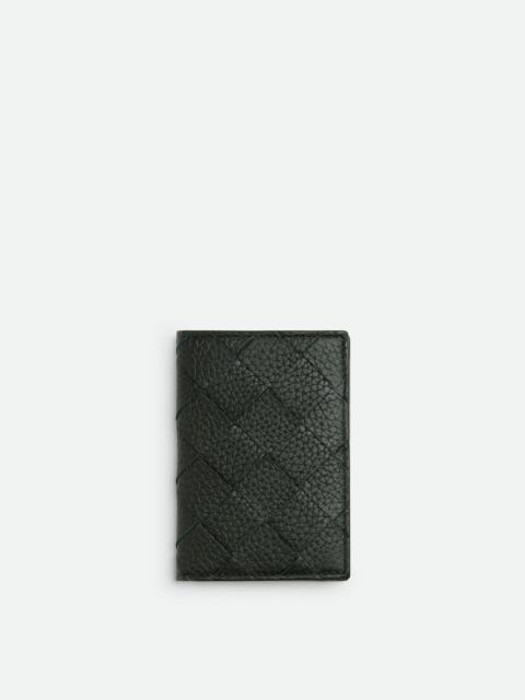 Flap card case in grained Intrecciato calf leather. Product Details - Grained Intrecciato calfskin leather card case - Six card slots, two additional pockets - Lining: Calfskin - Color: Fondant - Hardware: Silver finish - Made in: Italy - Product code: 749417V5I512145 Material - Material: Calfskin Size & Fit - Height: 11.2 cm (4.4") - Width: 8 cm (3.1") - Depth: 1 cm (0.4")