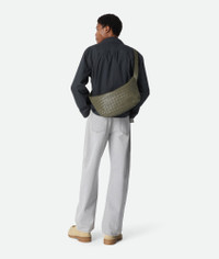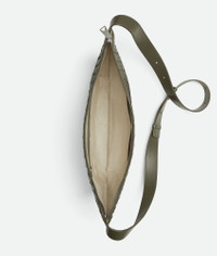 Product Details - Intrecciato leather round sling bag with adjustable strap - Single interior zipped pocket and two flat open pockets - Zip closure - Lining: Canvas - Color: Crocodile - Hardware: Silver finish - Made in: Italy - Product code: 855415V2HL13248 Material - Material: Calfskin Size & Fit - Height: 26.5 cm (10.4") - Width: 47 cm (18.5") - Depth: 5 cm (2.0") - Strap drop: 52 cm (20.5")
