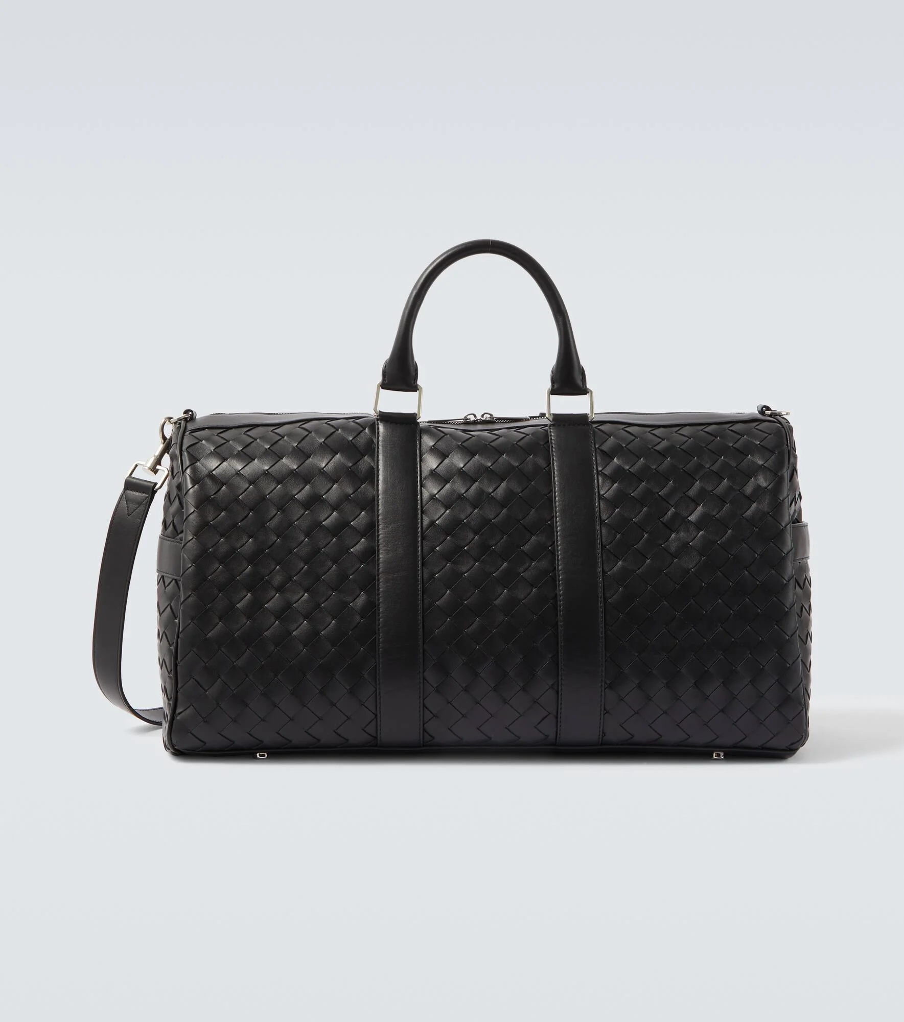 Developed in the 1970s, Bottega Veneta's artful Intrecciato technique guarantees the longevity of its leather goods. This duffel bag features two practical top handles and a detachable shoulder strap for an adjustable fit. Product Details - Material: leather - Lining: fabric, leather - Made in Italy - Color: black - Designer color name: Black-Silver - Item color: black - Hardware color: silver - Top handles, Detachable, adjustable shoulder strap - Internal details: internal zipped pocket, internal slot pockets, single compartment - Closure: two-way zipped top - Zipped side pocket - Item number: P01096868 Size & Fit - Height 28cm-11" - Width 52cm-20.5" - Depth 24cm-9.5" - Length of handle 41cm-16" - Adjustable shoulder strap - Min. length shoulder strap 104cm-41" - Max. length shoulder strap 124cm-49"