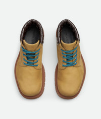 Cropped lace-up boot in nubuck leather with Intrecciato collar. Product Details - Nubuck leather lace-up cropped boot - Intrecciato collar - Lining: Calf leather - Color: Ochre/Fondant - Rubber outsole - Made in: Italy - Product code: 841489V3H617166 Material - Material: Calfskin Size & Fit - Flatform: 4.5 cm | 1.8"