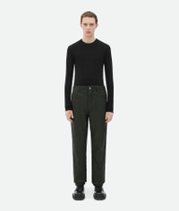 Intrecciato leather pants. Product Details - Intrecciato leather pants - Button closure - Straight leg - Half lined - Material: 100% Lambskin - Color: Dark Green - Made in: Italy - Product code: 729820V2JG03350 Size & Fit - Model is 187 cm | 6'1" and is wearing a Bottega Veneta size 46