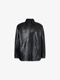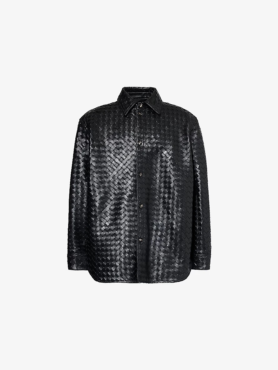 Intrecciato long-sleeves relaxed-fit leather shirt