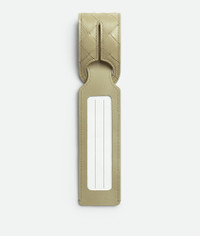 Intrecciato calfskin leather tag holder. Product Details - Window to display paper tag - Paper tag inside for name and address - Material: calfskin - Lining: Calfskin - Color: Travertine - Height: 4.5 cm | 1.8" - Width: 31.5 cm | 12.4" - Depth: 0.5 cm | 0.2" - Made in: Italy - Product code: 786628V2HL12915