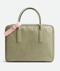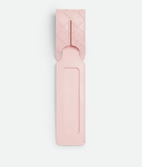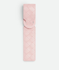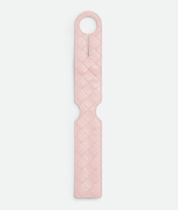Intrecciato calfskin leather tag holder. Product Details - Window to display the paper tag - Paper tag inside for name and address - Material: Calfskin - Lining: Calfskin - Colour: Rose - Height: 4.5 cm | 1.8” - Width: 31.5 cm | 12.4” - Depth: 0.5 cm | 0.2” - Made in: Italy - Product code: 786628V2HL16867