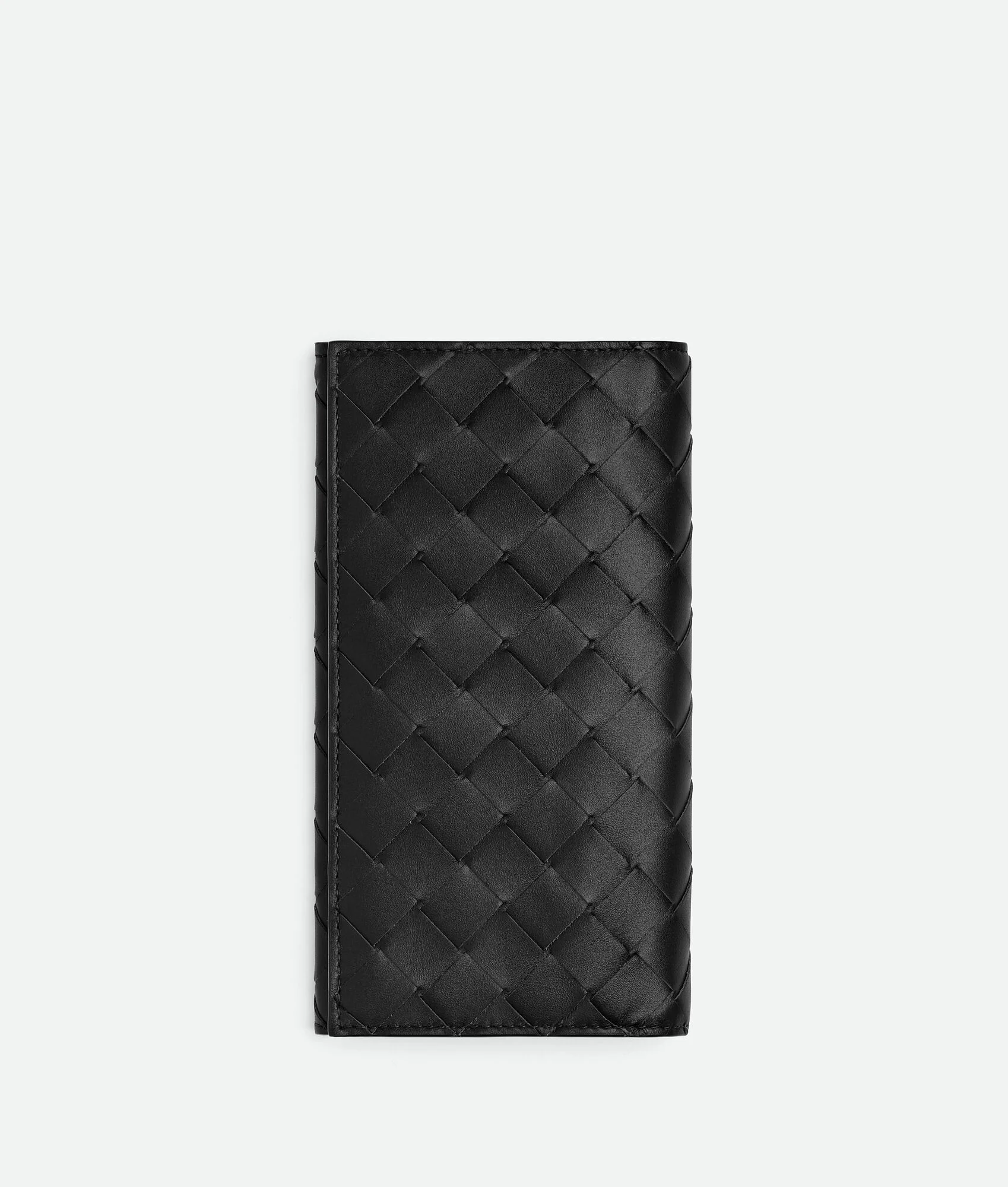 Intrecciato calfskin leather wallet with contrasted interior Make it unique Product Details - Nine card slots, two bill compartments, two additional pockets, one back pocket - Material: calfskin - Lining: Calfskin - Color: Black - Height: 10 cm | 3.9" - Width: 18 cm | 7.1" - Depth: 2 cm | 0.8" - Made in: Italy - Product code: 749436VCPQ51005