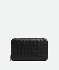 Medium Intrecciato calfskin leather organiser Product Details - Interior leather tag with embossed logo - Zipper closure - Material: calfskin - Lining: Canvas - Color: Black - Hardware: Silver finish - Height: 13 cm | 5.1" - Width: 22 cm | 8.7" - Depth: 4 cm | 1.6" - Made in: Italy - Product code: 765809V2HL08803