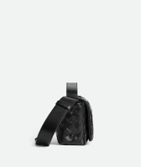 Product Details - Intrecciato calfskin leather mini bag - Adjustable and detachable top handle and cross-body strap - One main compartment, one flat inside pocket - Flap closure - Lining: Nappa - Color: Black - Hardware: Silver finish - Made in: Italy - Product code: 857931V2HL08803 Material - Material: Calfskin Size & Fit - Height: 12 cm (4.7") - Width: 20 cm (7.9") - Depth: 6.5 cm (2.6") - Strap drop: 4 cm (1.6") - Handle drop: 55 cm (21.7")