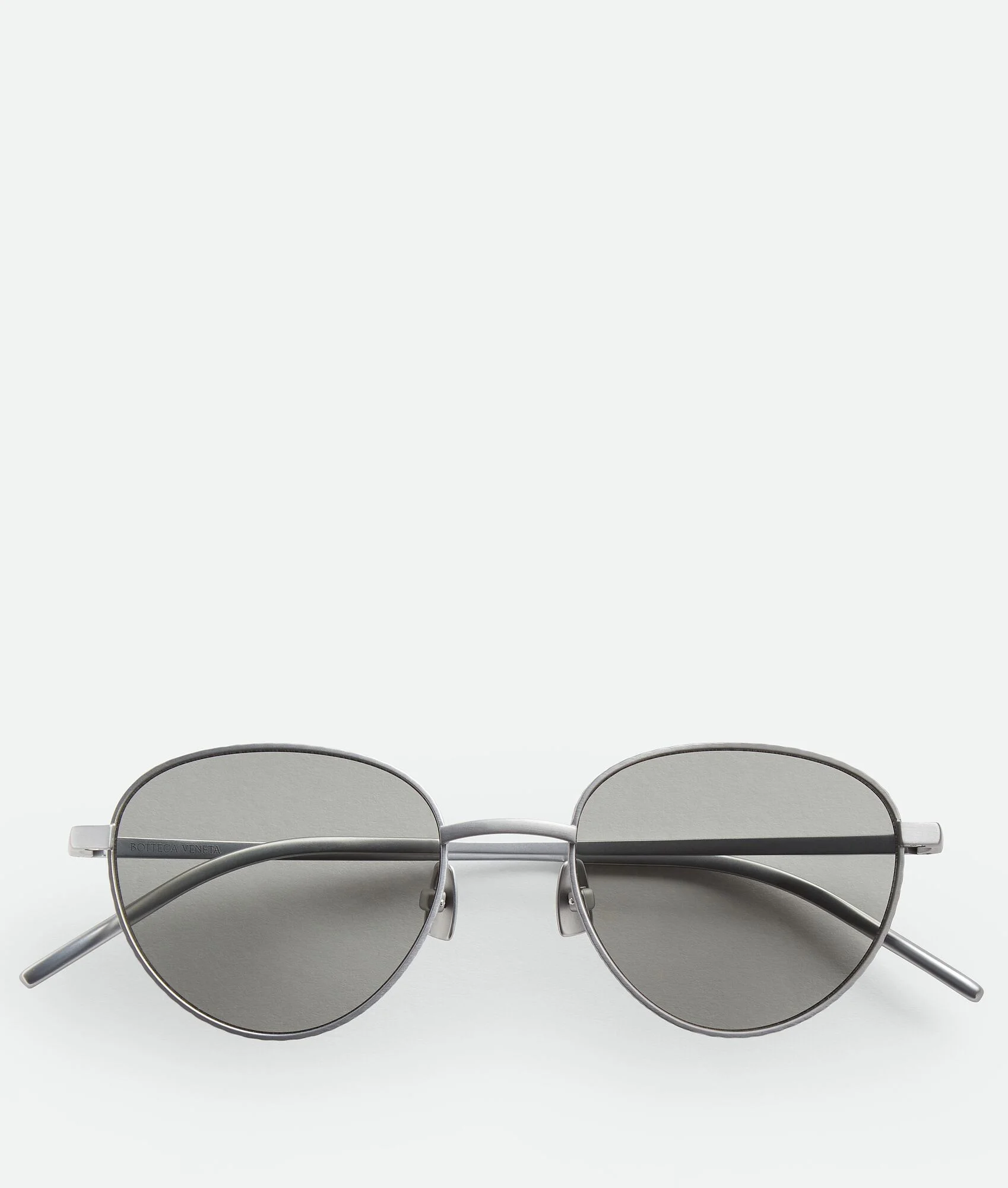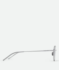 Panthos sunglasses in lightweight titanium with signature Intrecciato-inspired detailing. Product Details - Rims and temple tips featuring signature Intrecciato pattern - Comfortable and lightweight frame - Lenses made from polyamide with 39% bio-based content - Lens width: 50 mm | 2"; Bridge length: 19 mm | 0.7"; Temple length: 145 mm | 5.7" - BV1966S 004 - Color: Silver/Gray - Made in: Japan - Product code: 841368VIGA08118 Material - Material: Titanium
