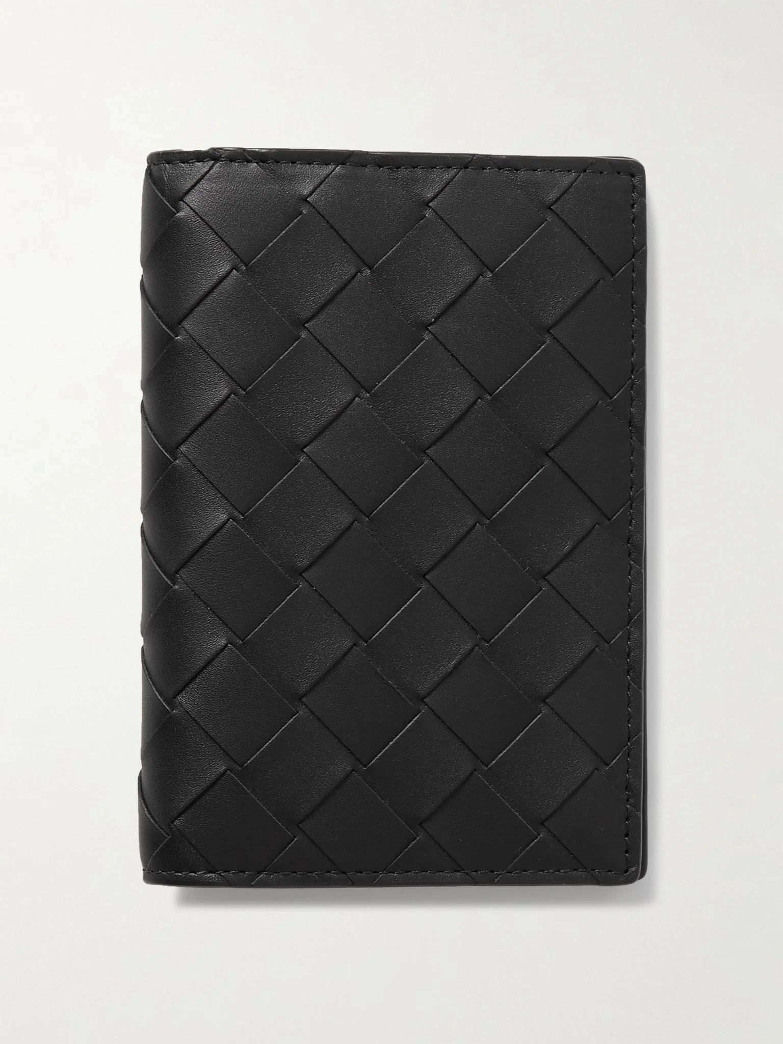 It was circumstance that led Bottega Veneta to the intrecciato technique – the sewing machines in Veneto weren't strong enough to handle thick leather, so the house decided to weave strips instead. This passport holder will keep your essentials secure on trips abroad. It opens to two sizable pockets and six card slots, so you can forgo a wallet. Details & Care - Black leather (Calf) - Comes in a presentation box