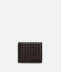 Intrecciato piccolo calfskin leather wallet. Product Details - Eight card slots, two note compartments, two additional pockets - Our VN Preserve calfskin leather is crafted using the BioBasedLeather® process, which ensures a limited presence of petrol-based components and exclusive reliance on renewable energy sources. - Material: calfskin - Lining: Calfskin - Color: Fondant - Hardware: Silver finish - Height: 9.5 cm | 3.7" - Width: 11 cm | 4.3" - Depth: 0.5 cm | 0.2” - Made in: Italy - Product code: 796966V4LQ22145