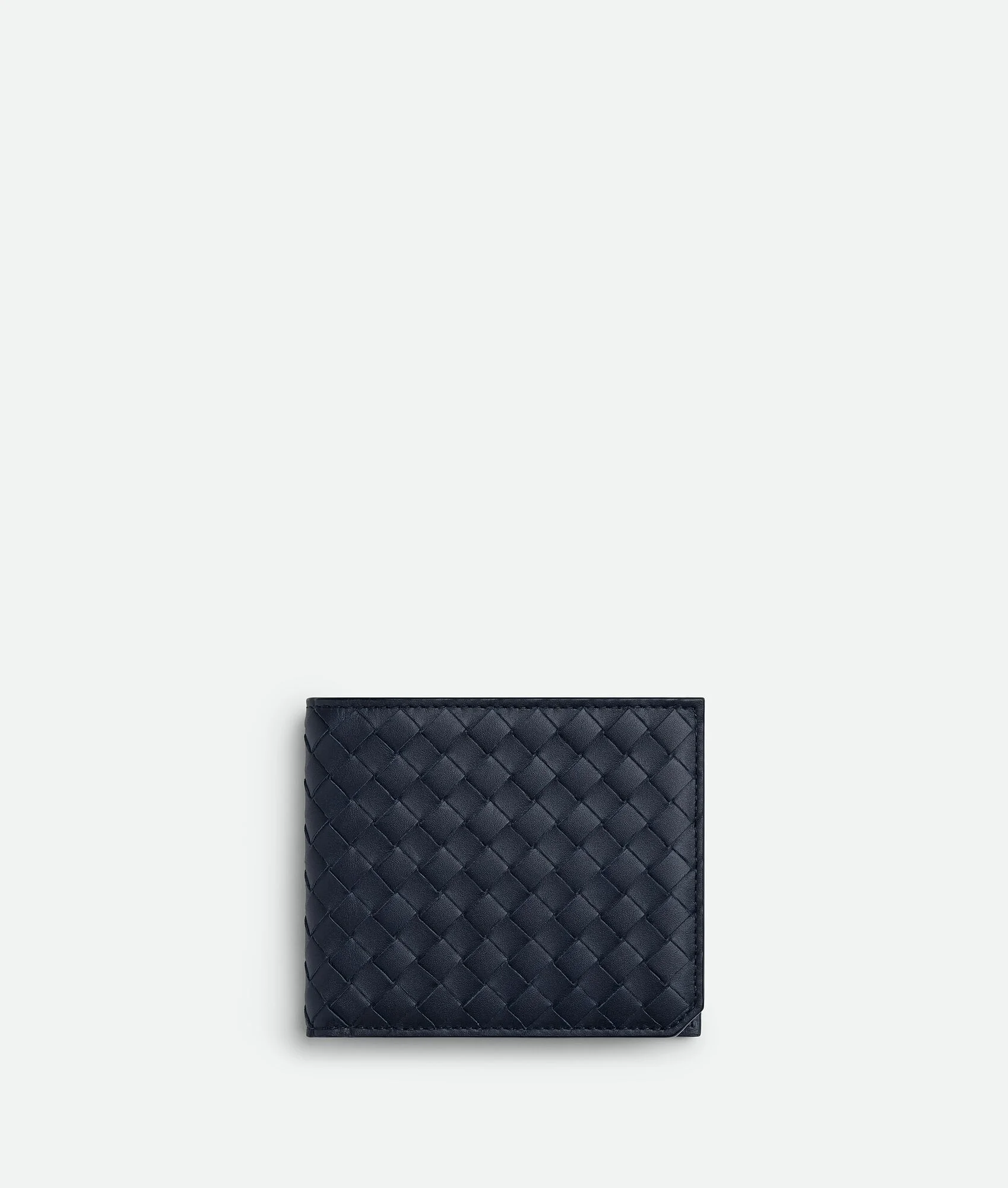 Intrecciato piccolo calfskin leather wallet. Product Details - Four card slots, two bill compartments, two additional pockets, one coin purse - Our VN Preserve calfskin leather is crafted using the BioBasedLeather® tanning process, which reduces the use of petroleum-based components to less than 3% and is fully powered by renewable energy sources - Material: calfskin - Lining: Calfskin - Color: Space - Hardware: Silver finish - Height: 9.5 cm | 3.7” - Width: 11 cm | 4.3” - Depth: 1 cm | 0.4” - Made in: Italy - Product code: 805654V4LQ24028