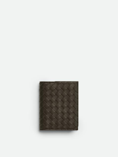 Flap card case in Intrecciato piccolo calf leather. Product Details - Intrecciato piccolo calf leather card case - Six card slots - Our VN Preserve calf leather is realized through the BioBasedLeather® process, which ensures a limited presence of petrol-based components and exclusive reliance on renewable energy sources - Material: Calfskin - Lining: Calf leather - Color: Dark Green - Hardware: Silver finish - Height: 10.2 cm | 4" - Width: 8.2 cm | 3.2" - Depth: 0.5 cm | 0.2" - Made in: Italy - Product code: 796964V4LQ13009