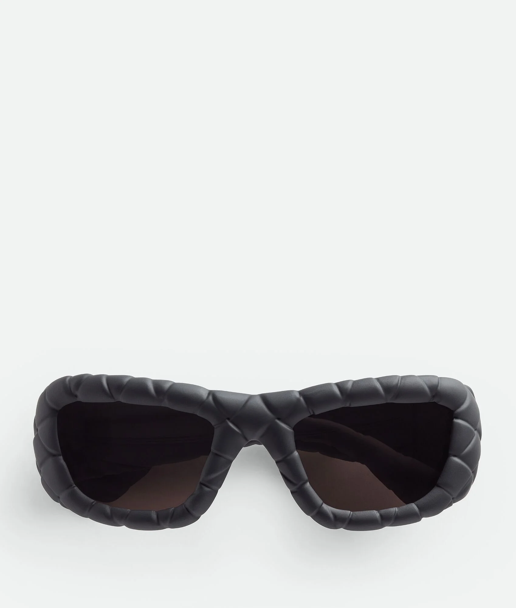 Rectangular sunglasses in injected acetate. Made in Japan. Product Details - Signature Intrecciato pattern on front and temples - Bio nylon lenses - BV1303S 001 - Color: Black/Grey - Made in: Japan - Product code: 779523VBL801049 Material - Material: acetate
