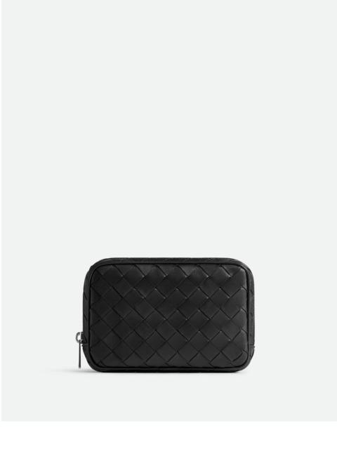 Small Intrecciato calfskin leather organiser Product Details - Interior leather tag with embossed logo - Zipper closure - Material: calfskin - Lining: Canvas - Color: Space - Hardware: Silver finish - Height: 11.5 cm | 4.5" - Width: 16.5 cm | 6.5" - Depth: 3.5 cm | 1.4" - Made in: Italy - Product code: 765800V2HL08838