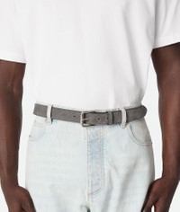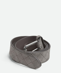 Belt in suede with embossed Intrecciato pattern. Product Details - Intrecciato embossed suede belt - Metal roller buckle - Prong closure - Lining: Calf leather - Color: Incenso - Hardware: Silver finish - Made in: Italy - Product code: 838467V5TK18900 Material - Material: Calfskin Size & Fit - Height: 3 cm | 1.2" - Depth: 0.5 cm | 0.2"