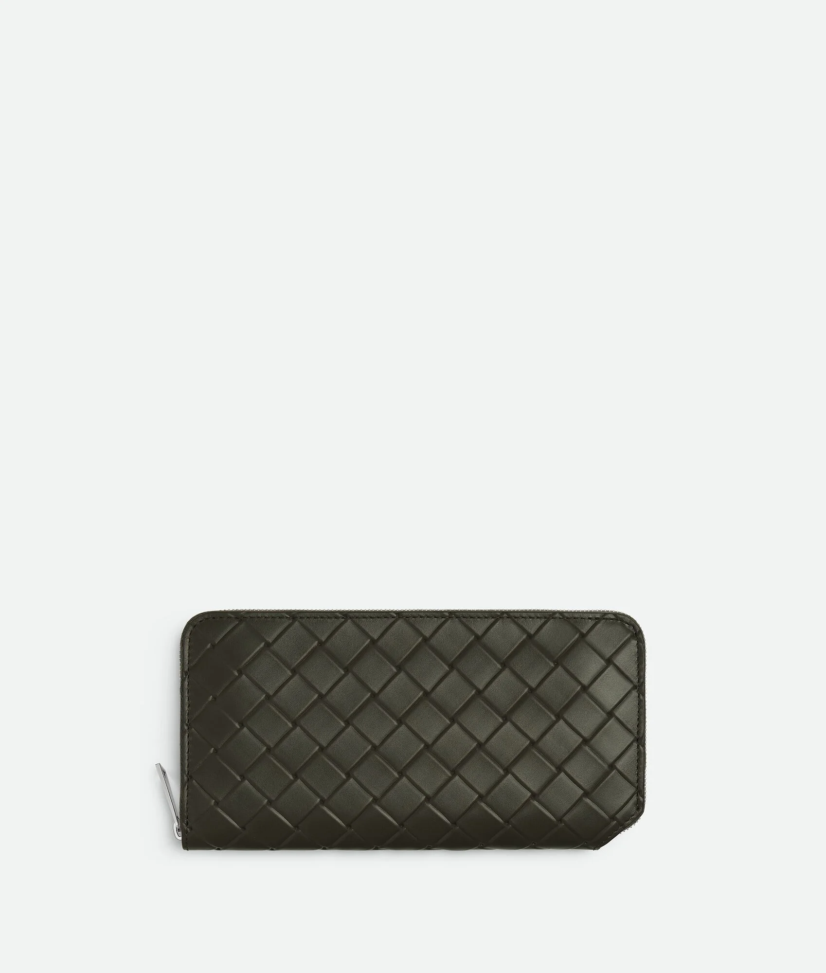 Zip around wallet in calf leather with embossed Intrecciato pattern. Product Details - Intrecciato embossed calf leather wallet - Eight card slots, two note compartments, two additional pockets, one zipped coin purse - Zipper closure - Lining: Calf leather - Color: Camping - Hardware: Silver finish - Made in: Italy - Product code: 832904V0AQ13203 Material - Material: Calfskin Size & Fit - Height: 10 cm | 3.9" - Width: 19 cm | 7.5" - Depth: 2 cm | 0.8"