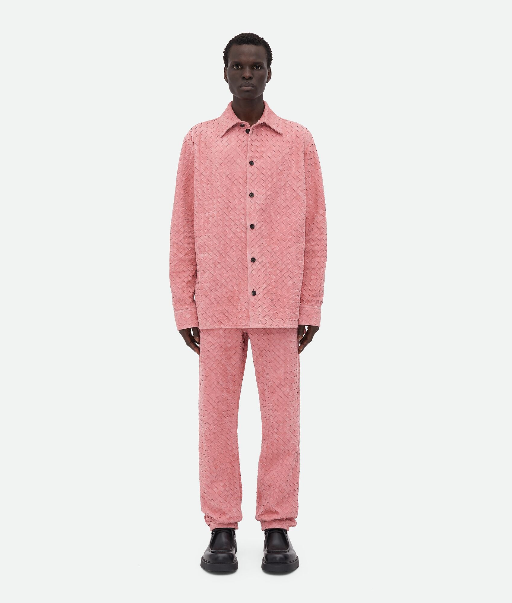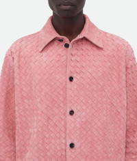 Shirt realised in suede leather with signature Intrecciato craftsmanship. Product Details - Suede Intrecciato leather shirt - Button closure - Unlined - Regular fit - Material: 100% Goat - Color: Cherry Blossom - Made in: Italy - Product code: 752730V4HG05071