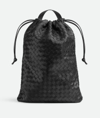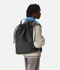 Product Details - Intrecciato leather backpack with drawstring closure and adjustable shoulder straps - One interior zipped pocket and two flat open pockets - One exterior zipped pocket - Drawstring closure secured by a magnet - Lining: Nylon - Color: Black - Hardware: Silver finish - Made in: Italy - Product code: 843837V2HL18803 Material - Material: Calfskin Size & Fit - Height: 52 cm | 20.5" - Width: 39 cm | 15.4" - Depth: 2 cm | 0.8" - Handle Drop: 12 cm | 4.7 - Fits a 13" laptop