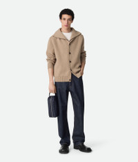 Pouch in grained Intrecciato calf leather with handle. Product Details - Grained Intrecciato calfskin leather pouch with handle - One interior zipped pocket, one open pocket - Zipper closure - Lining: Nylon - Color: Nocturnal - Hardware: Silver finish - Made in: Italy - Product code: 729295V5I504182 Material - Material: Calfskin Size & Fit - Height: 13 cm | 5.1" - Width: 26 cm | 10.2" - Depth: 10 cm | 3.9" - Handle drop: 7 cm | 2.8"